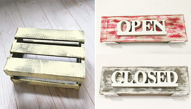 2色目が乾いたら、サンドペーパー(中目#120~150くらいがおすすめ)でところどころを1色目が見えるまで削ります。角など凸部分に多めに削ると自然な使用感(アンティーク感)が出ます。